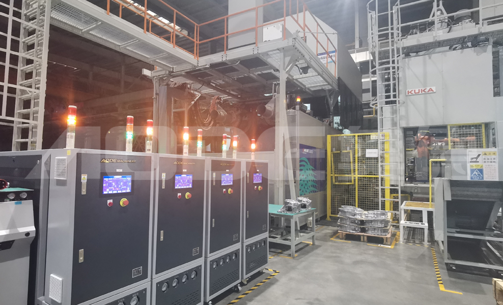 2.壓鑄溫控島一站式交付:模溫機(jī),點(diǎn)冷機(jī),模冷機(jī),冷水機(jī),純水機(jī),模具管道清洗機(jī).